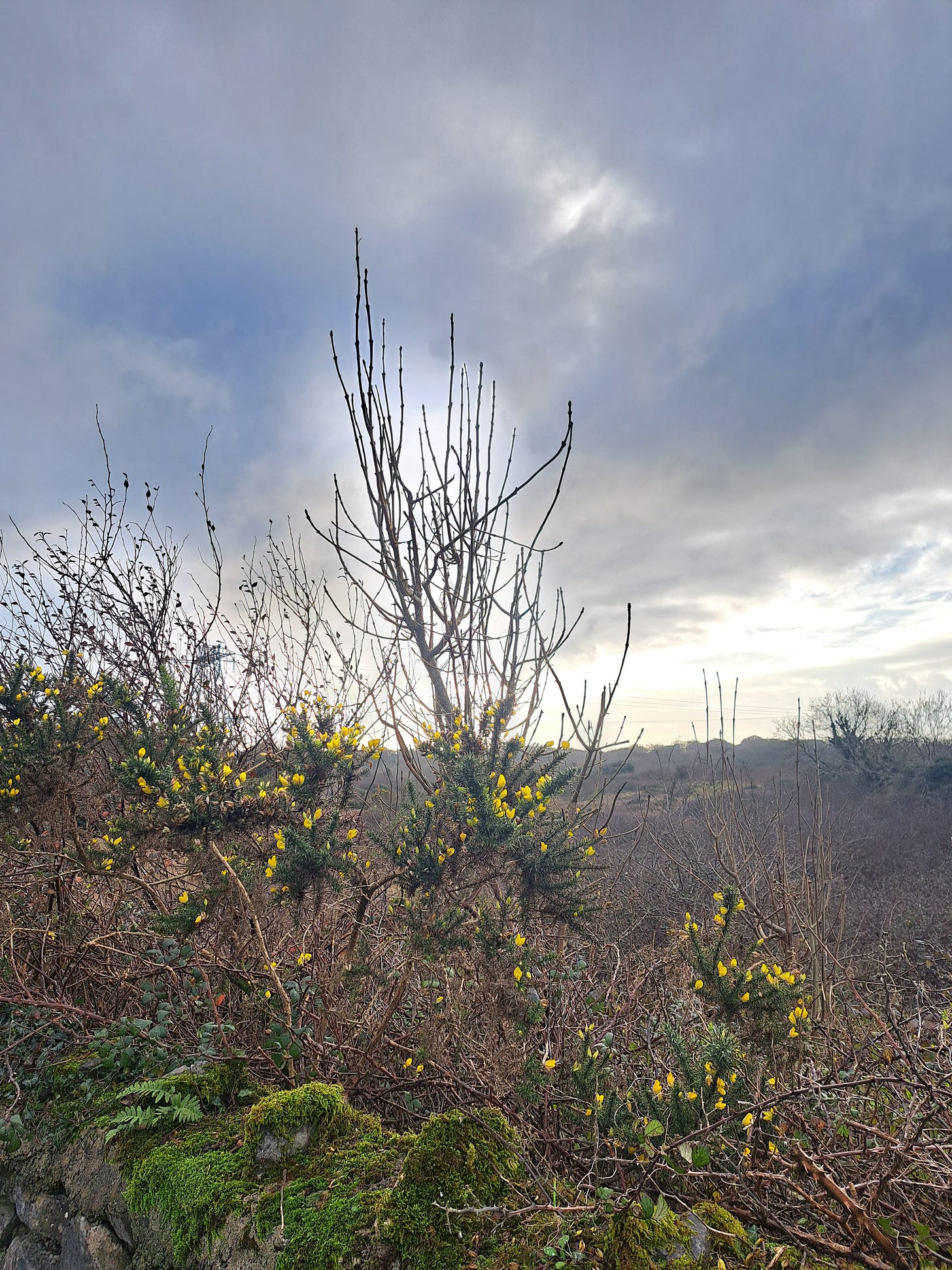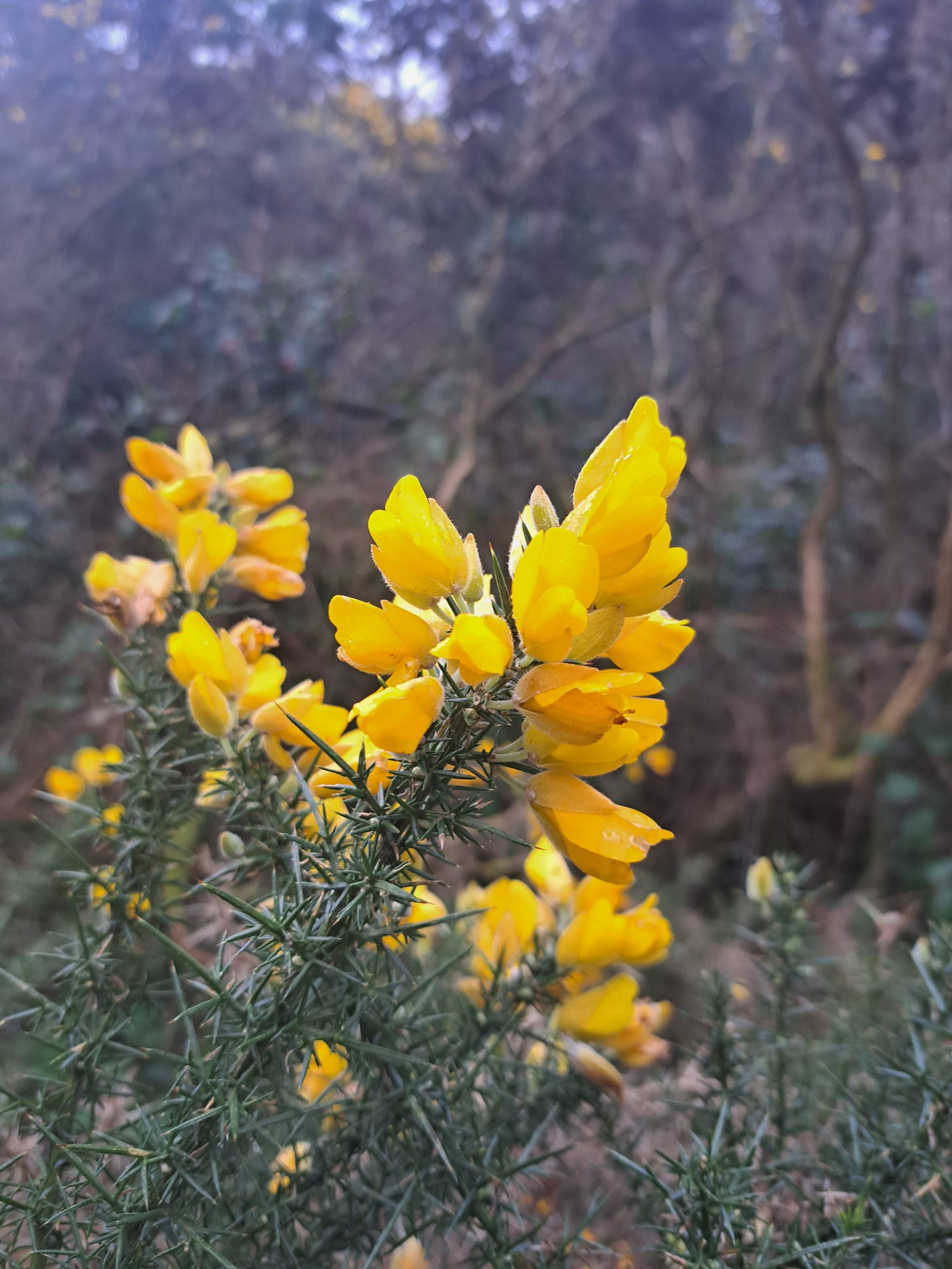 Gorse has a less domestic but no less deep place in the Irish imagination. It belongs to rough land, roadside banks and the untidy brilliance of the few remaining uncultivated places in our country. It is not hard to see why it has lasted so strongly in our memory and language. For many people in Ireland, gorse is one of the first plants that makes spring visible at a distance. Unlike primrose, you do not discover it by stooping. You see it on the hill before you and the dog come near it. If primrose is the intimate one, gorse is its theatrical brother: mad, bad, and dangerous to know.